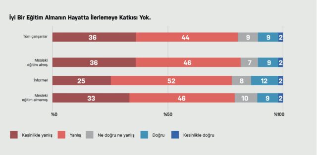 Ve daha çarpıcı olan ise, eğitimini yeterli bulmayanların oranı %35. Bu oran yalnızca bir endişe düzeyi değil; toplumun içten içe kaybettiği özgüvenin sayısal izdüşümüdür. KONDA’nın ölçtüğü depresyon endeksinin pandeminin ortasındaki seviyeye ulaşmış olması, sosyo-psikolojik yorgunluğun iş gücünde kendini nasıl gösterdiğini kanıtlar nitelikte.