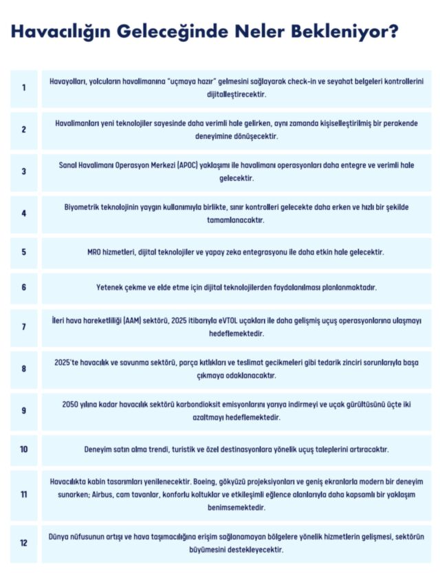 Havacılık, yalnızca insanları taşıyan değil, veriyle yönetilen, sürdürülebilirliğe koşan ve deneyimi merkeze alan bir sektöre dönüştü. Trilyon dolarlık bu devin yeni liderleri; teknolojiyle birleşen, çevreye duyarlı, müşteri odaklı ve lojistikte esnek sistemler kuran oyuncular olacak.
