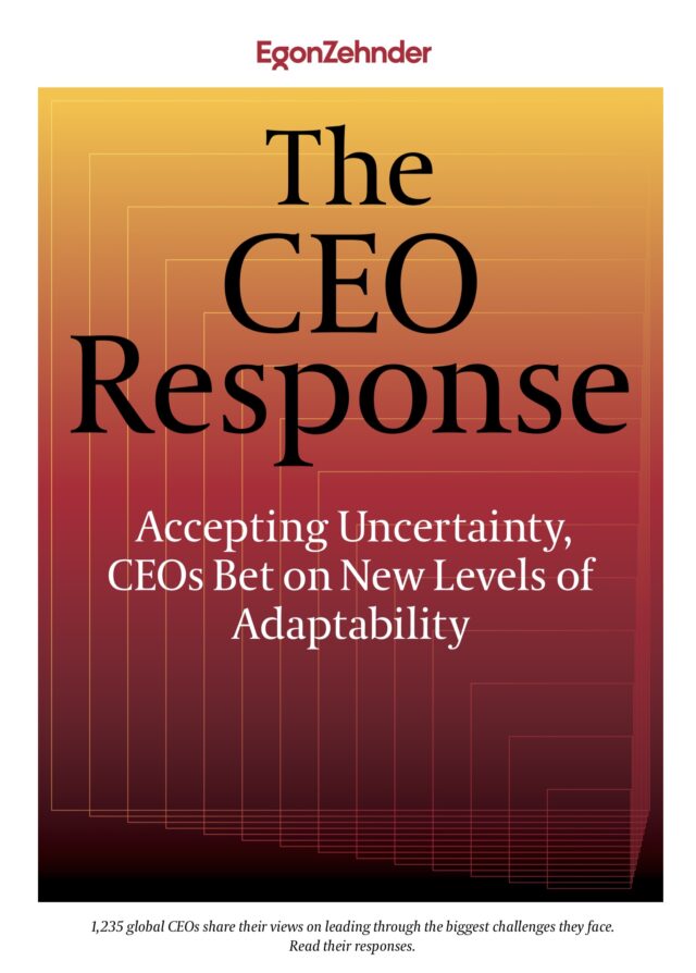 Liderlik danışmanlık firması Egon Zehnder’in 1.235 küresel CEO ile gerçekleştirdiği “The CEO Response” (CEO’nun Yanıtı) başlıklı araştırma, üst düzey yöneticilerin jeopolitik ve ekonomik çalkantılar karşısında artan bir karamsarlık içinde olduğunu, ancak bu duruma rekor düzeyde bir uyum yeteneği geliştirerek ve teknolojiye yatırım yaparak yanıt verdiğini ortaya koydu.